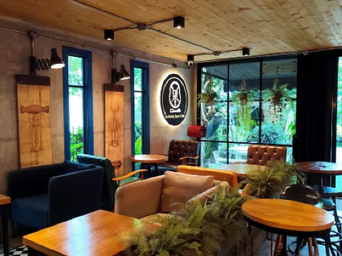คาเฟ่และโคเวิร์กกิ้งสเปซบรรยากาศร่มรื่น ติดทะเลสาบเมืองทองธานี เหมาะมากสำหรับคนที่อยากหามุมนั่งเล่นก่อนหรือหลังคอนเสิร์ต ตัวร้านกว้างกว่า 2 ไร่ มีทั้งบ่อปลาคาร์ป น้ำตก และโซนศิลปะให้วาดรูปแบบเพลิน ๆ