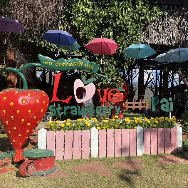สวนสตรอว์เบอร์รีที่คุณสามารถเก็บผลสดๆได้จากต้น และยังได้เพลิดเพลินกับวิวทิวเขาที่สวยงามในปาย ที่นี่มีกิจกรรมสนุกๆ และของที่ระลึกหลากหลายให้เลือกซื้อด้วยนะคะ เป้นสวนสตรอว์เบอร์รีในปาย ที่ได้รับความนิยมมากๆเลยค่ะ ใครชอบกินสตรอว์เบอร์รี หรืออยากมาลองเก็บเองจากต้นสักครั้งบอกเลยห้ามพลาด