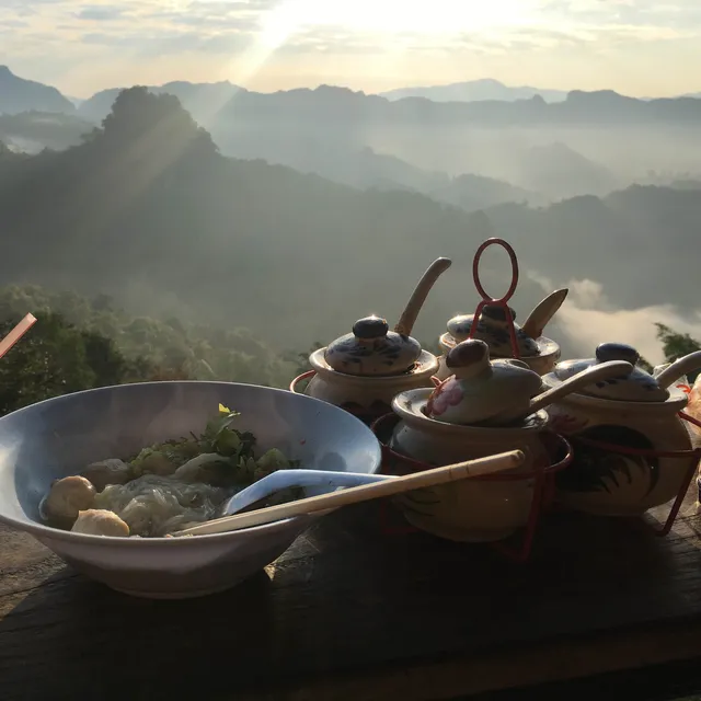 ก๋วยเตี๋ยวห้อยขาบ้านจ่าโบ่ ร้านก๋วยเตี๋ยวสุดชิคที่เสิร์ฟเมนูเด็ดในบรรยากาศท่ามกลางธรรมชาติ รสชาติอร่อยและบรรยากาศสุดฟิน นั่งกินเพลินๆ พร้อมวิวสวยๆ ทั้งอิมท้อง ทั้งอิ่มวิวแบบจุกๆไปเลย