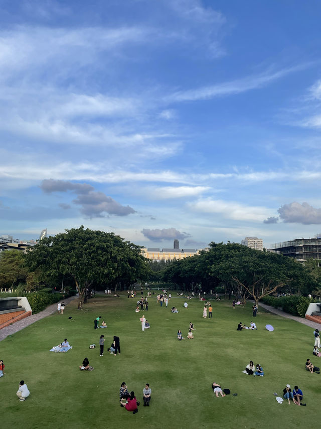 ที่เที่ยวกรุงเทพ ธรรมชาติ แห่งใหม่ที่เอาใจวัยรุ่น เพราะอยู่ย่านที่วัยรุ่นสามารถเดินทางไปได้ง่าย แถมยังมีกิจกรรม อีเว้นท์ดนตรีในสวนต่างๆ จัดที่นี่อยู่บ่อยครั้ง รวมถึงมินิคอนเสิร์ตของศิลปินดาราที่ชอบจัดแบบ Outdoor แต่อยากได้บรรยากาศดีๆ ส่วนใหญ่นิยมมาจัดที่นี่ บรรยากาศคล้ายสวนสาธารณที่เกาหลี ให้ฟีลแบบมานั่งชิลๆ รับลม หรือมาปิกนิคกับเพื่อนได้ ยิ่งถ้ามาช่วงเย็นๆ ก่อนพระอาทิตย์ตกในช่วงหน้าหนาว บรรยากาศจะดีมากๆ เลย