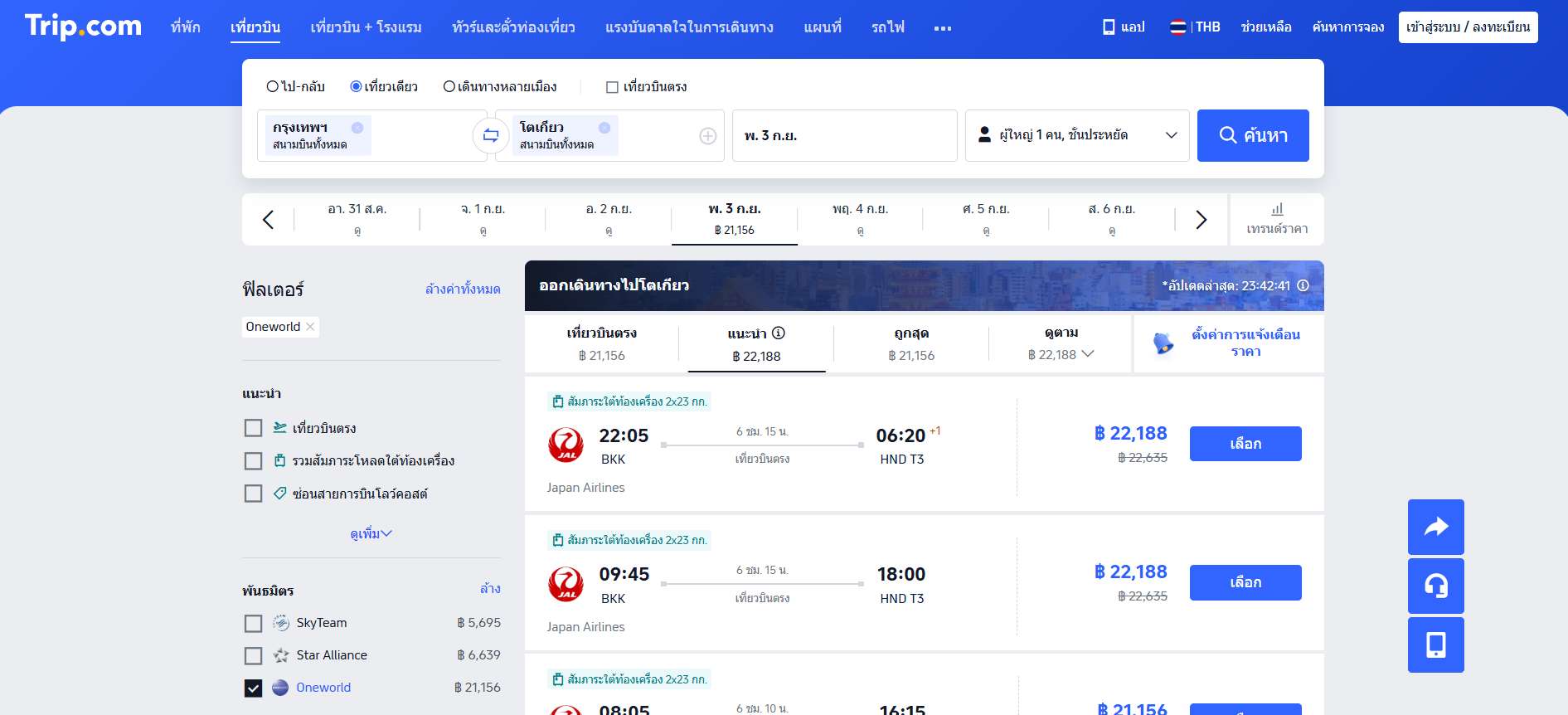 - เลือกสายการบิน Japan Airlines สามารถกดตัวเลือกเฉพาะสายการบินเพื่อให้ผลลัพธ์ไม่ปนกับเจ้าอื่น