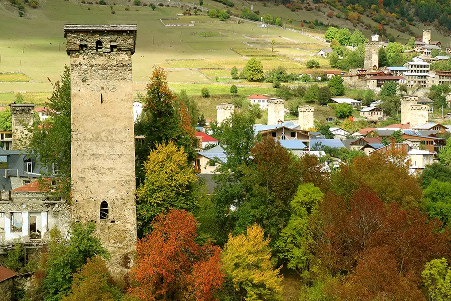 สถานที่ต่อไปคือ ชุมชนปล่องไฟ เมืองเมสเตีย(Mestia) ซึ่งเป็นเมืองเล็กๆ ที่ไม่ควรพลาด ที่ตั้งอยู่ระหว่างทางไปเมืองอุชกูลลี่ เอกลักษณ์ที่ชัดเจนและโดดเด่นของเมืองนี้ คือทุกๆ บ้านจะมีหอคอยขนาดใหญ่เห็นเด่นชัด ที่หากมองไกลๆ จะเหมือนปล่องไฟมากๆ ซึ่งในสมัยก่อนมีไว้เพื่อการรักษาความปลอดภัยของเมือง แม้จะเป็นเมืองเล็กแต่บรรยากาศสวยงามและยิ่งใหญ่มาก รายล้อมด้วยไปด้วยภูเขาลูกโตและ มีพิพิธภัณฑ์ให้ศึกษาประวัติศาสตร์อยู่ 2-3 แห่ง อีกอย่างที่น่าสนใจก็คือที่นี่มีเส้นทางเดินเขาชมป่าสนด้วย ถูกใจสายtrekking สุดๆ