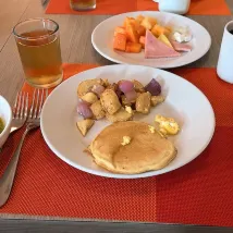 Отличный отель чтоб провести ночь перед ранним полётом дальше. На этаже есть вечером закуски и вино. Утром хороший завтрак. Тихо спокойно чисто. Рекомендую.