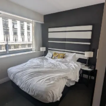 Great location and extremely comfortable bed. Size is spacious for 1 person. Would be just nice for 2