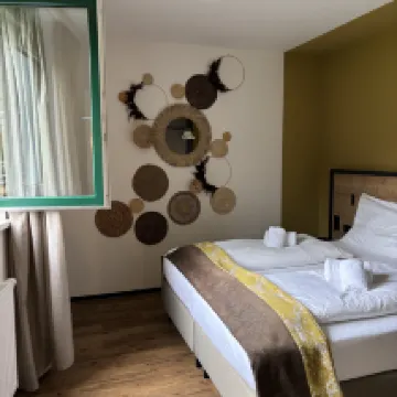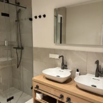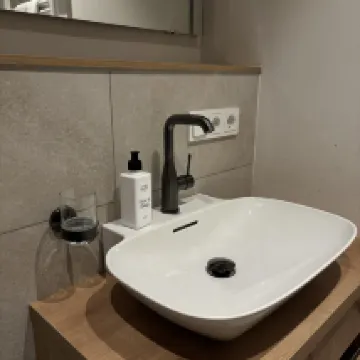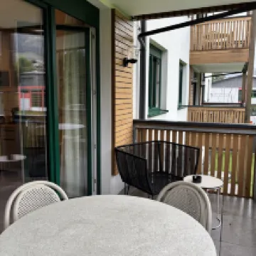 قضيت وقتًا رائعًا في هذا الفندق. الموقع مثير للإعجاب للغاية مع كل الجبال الخضراء المحيطة بك. يوجد سوبر ماركت جيد جدًا متوسط الحجم يوفر كل ما تحتاجه من الخبز ومنتجات الألبان على بعد 5 دقائق سيرًا على الأقدام. هذه القرية الصغيرة لطيفة جدًا للمشي، وستجد محلات القهوة والمخابز على بعد 10 دقائق أو أقل سيرًا على الأقدام. تحتوي الشقة نفسها على كل ما تحتاجه للطهي من أطباق وغلايات وميكروويف وما إلى ذلك وغسالة أطباق مع كل ما تحتاجه للتنظيف. الشيء الوحيد هو أن شقتنا كانت بدون تكييف بينما تحتوي بعض الشقق الأخرى في الطابق الثالث على تكييف. تحتوي بعض الشقق على حمام واحد فقط يتضمن مراحيض؛ ومع ذلك، تحتوي بعض الشقق الأخرى، كما علمت لاحقًا، على حمامين، ولكل منهما مراحيضه الخاصة. بلا شك، أوصي بشدة بهذا الفندق.