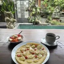 직원 친절하고 정성을 다해 만들어주신 간단한 아침도 훌륭했고 -포함조식- 커피도 인스턴트 같은데 맛있었어요. 미리 왓츠앱으로 연락랬는데 에어컨도 미리 켜두어서 시원했습니다. 주변 조경도 ‘아 내가 발리에 있구나’ 하는 느낌을 줍니다.