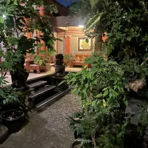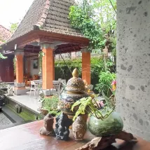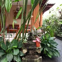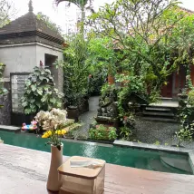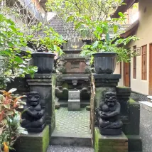 Маленький семейный отель в центре города. До любой достопримечательности Убуда 15 минут пешком. Уютный, зеленый, ощущение, как будто гостишь у балийских родственников. Из-за того, что вход в отель через узкий проулок, шум с центральных улиц сюда не доносится. Внутри тишина, слышно лишь шелест листьев и щебетанье птиц.