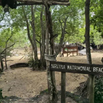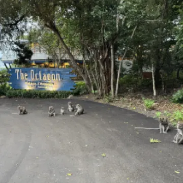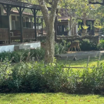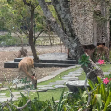 Il est situé dans le parc national, entouré de forêt, de biches, de singes et d'autres animaux endémiques.