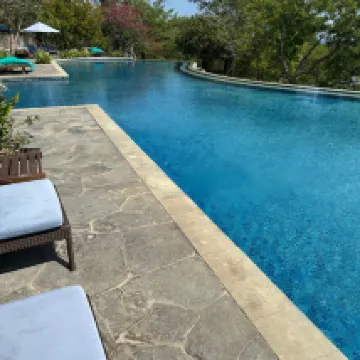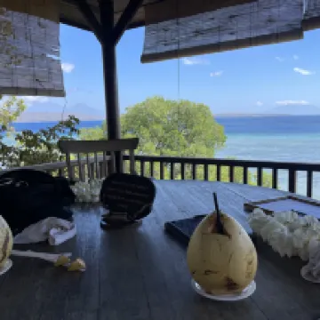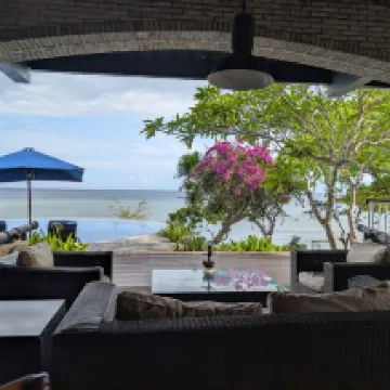 Very remote and very quiet resort. Set right on the coast with a lovely view out to the sea from the restaurant and swimming pool. There's a private beach and the hotel offers excursions such as snorkelling, scuba diving, a safari within the national park, a balinese cooking class, to name a few. The hotel offers complimentary activities such as yoga, snorkelling, a forest walk with a guide, etc. The atmosphere is very calm, quiet, relaxed and romantic and the villas were really well equipped and spacious. The service from the spa and hotel staff was excellent. The restaurant served a variety of food and drink all of which was superb. We wouldn't hesitate to come back if visiting Bali.