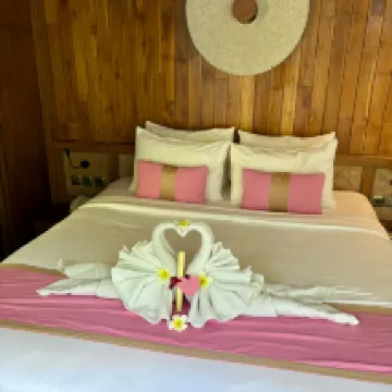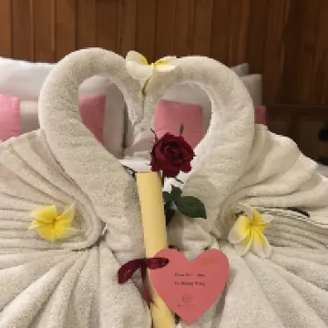 From check in to check out, service was top notch! Checked in around 10pm, was greeted with a welcome drink (watermelon juice) and a cake as we were on our honeymoon. Staff was super friendly and soft spoken. Brought us to our villa which was the middle villa, the area was clean and breezy, pool in the middle as centre piece, strategically placed, kitchen was to the right which had apples, orange and snake fruit. They provided 6 bottles of Aqua(mineral water). Our bed was made up and had 2 swan towels to welcome us. Toilets and bathroom came with hairdryer, basic toiletries such as tooth brush shower cap comb and razor, in house slippers were provided as well. The villa was quiet even though there were bars and pub area outside our villa. That being said it was easy to find food and the villa is located in a bustling area with lots to see and cafes to visit. All in all was an amazing stay, would come back again!