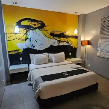 My room had a nice queen sized bed and they promptly provided me with a kettle after I asked for one. The staff are very young and maybe not the most fluent in English but they mean well. It helps to ask them in basic English (a few times) so they get my instructions (asking for water or directions etc). The room has a decent bathroom and the only issue I had was that my room was consistently in the dark as there are no windows. There is a door that leads out onto a weird ledge that unfortunately or oddly is shared by the neighbor (meaning if I step out and the neighbor steps out we can go into each others rooms). I just kept that particular door shut because I saw through the curtain that the neighbor had his door open so he could smoke. I didn’t want to make contact or have smoke come in. It’s not a major issue for me but just be aware. Oh btw…the ledge or balcony looks onto nothing but a brick wall. Overall I’m inclined to say that you’re getting value for money because you get a clean room, comfy bed in a central location. The breakfast is brought into your room at your nominated time (between 7-10.30am). Breakfast is an omlette, 2 pieces of bread, coffee, orange juice and small sausages along with 3 small Indonesian sweets). Not exactly a hearty meal but what do you expect for $5? I stayed a month and it suited my needs.