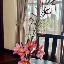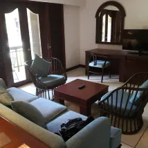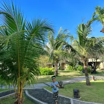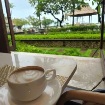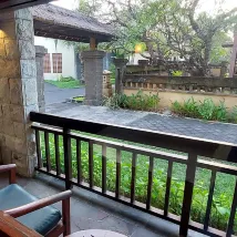 ข้อดีของโรงแรม ขับรถจากสนามบิน 5-6 นาที สวนขนาดใหญ่ริมทะเล สระว่ายน้ำขนาดใหญ่ อาหารเช้าหลากหลาย เหมาะสำหรับมื้อเช้าริมทะเล ดอกไม้และต้นไม้นานาชนิด ห้องนอนใหญ่ในวันแรก ชั้น 1 แห้งไม่พอนิดหน่อยเพราะว่าวันต่อมาผมได้ขยายห้องออกไปไม่มีเตียงขนาดใหญ่เลยเปลี่ยนมาเป็นเตียงคู่ที่ชั้น 2 พอใจที่สุดกับระเบียงนี้ มีแสงแดดส่องถึงแต่ละด้านเมื่อเปิดประตูก็จะเห็นต้นไม้และดอกไม้และเสื้อผ้าก็แห้งได้เร็ว ชั้นสอง โดยรวมแล้วฉันพอใจมาก สามีของฉันเก็บดอกไม้มาใส่แก้วน้ำ สวยมาก ต่อมาฉันไปอูบุดและโรงแรมที่ฉันพักมีสวนเล็ก ๆ และฉันวางแผนจะจองสิ่งนี้ โรงแรมอีกครั้งเมื่อฉันกลับไป ข้อเสียเล็กน้อยคือขับรถจากสนามบินลำบากนิดหน่อยและห้องชั้น 1 ไม่ค่อยสว่างเท่าชั้น 2 ในฐานะคนที่รักการทำสวนและแสงแดด ฉันก็พอใจมากแล้ว