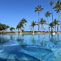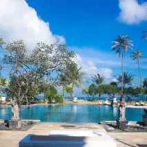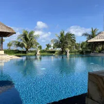 โรงแรม5ดาวในบาหลีบริการสุดเลิฟ โปรโมชั่นถูกใจ มาถึงวันแรกได้รับwelcoming drink สุดสดชื่น สิ่งที่ประทับใจอย่างแรกคือพนักงานทุกคนไม่ว่าจะที่ล็อบบี้หรือพนักงานทำสวน หนือยกกระเป๋า ล้วนแต่พูดภาษาอังกฤษเก่ง และเป็นกันเองมากๆ สิ่งที่ต้องร้องว้าวต่อไปคือขนาดของสระว่ายน้ำ ใหญ่ที่สุดเท่าที่เคยเห็นโรงแรม5ดาวทำมา มีทั้งส่วนผญ เด็ก และสระจากุชชี่นวดตัว เวลาว่ายน้ำก็จะเห็นวิวขึ้นลงของสายการบินต่างๆ ที่สำคัญในบาร์ริมสระมีโปรโมชั่นซื้อ1แถม1 ในช่วงเย็นของทุกวัน และหากต้องการบรรยากาศทานอสหารเช้าแบบextrem แนะนำให้ลองบริกสน floating breakfast ไม่เคยเจอืี่ไหนมาก่อนที่ให้คนใส่ชุดง่ายน้ำ ลงไปกินข้างเช้าในสระ อันนี้ต้องยกนิ้วให้ไอเดียเขาเลย ที่สำคัญนอกจากจะมีชายหาดส่วนตัวแล้ว โรงแรมยังอยู่ใกล้ๆสนามบินมากๆ สามารถเดินเท้าไปได้เลย ใครอยากมาrelaxบาหลีแบบไม่ต้องเหนื่อยเชิญพักที่นี่เลยค่ะ หรืออยากadventure สามารถเช่ารถมอเตอร์ไซค์เที่ยวรอบเกาะได้ในราคาไม่