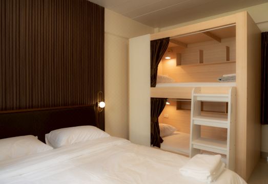 เตียงคิงไซส์ 1 เตียงและเตียงสองชั้น 1 เตียง