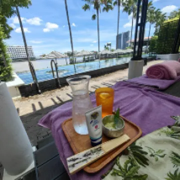 ประทับใจมากค่ะ การตัดสินใจที่ถูกต้องที่สุดในการมาเที่ยวกรุงเทพฯ คือการเลือกพักโรงแรมนี้ ในกรุงเทพฯ ที่รถติดขัดและวุ่นวายทุกหนแห่ง การได้พักในสถานที่ที่ทำให้รู้สึกสงบเงียบแบบนี้มันเยียวยาจิตใจได้จริงๆ ค่ะ อาหารเช้าของโรงแรมมีให้เลือกหลากหลาย ทั้งสไตล์ตะวันตกและอาหารไทย ทุกอย่างปรุงสดใหม่ตามสั่ง และรสชาติดีมากค่ะ เราสองคนกินกันสามวันยังไม่ค่อยซ้ำเมนูเลย ตื่นเช้ามาก็มีวิวสวยๆ ให้มอง อาหารก็อร่อยไม่หยุด ทำให้รู้สึกเหมือนมีพลังงานเต็มเปี่ยมตลอดทั้งวันเลยค่ะ ห้องพักกว้างขวางและประดับตกแต่งด้วยงานศิลปะมากมาย การตกแต่งภายในโรงแรมก็มีบรรยากาศศิลปะมากค่ะ ภายนอกเป็นสวนกว้างใหญ่ที่เงียบสงบ ริมสระว่ายน้ำถ่ายรูปออกมาสวยมาก พนักงานทุกคนบริการดีมาก ทำให้รู้สึกสบายใจค่ะ ถ้าจะพูดถึงข้อเสียก็มีบ้างค่ะ คืออยู่ไกลจากใจกลางเมืองไปหน่อย ถึงแม้ว่าทำเลจะค่อนข้างห่างไกล แต่โรงแรมมีเรือรับส่ง ทำให้สามารถเดินทางไปยังสถานที่ท่องเที่ยวสำคัญและย่านการค้าได้โดยไม่ต้องนั่งแท็กซี่ ถ้าวางแผนดีๆ ก็ถือว่าสะดวกค่ะ