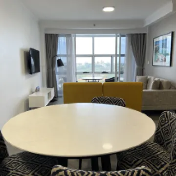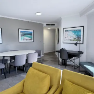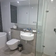 ห้องพักกว้างขวาง มีสามห้องนอน สองห้องนั่งเล่น และสองระเบียง—หนึ่งระเบียงปิดและอีกหนึ่งระเบียงเปิด—มองเห็นวิวของซิดนีย์โอเปราเฮาส์และสะพานฮาร์เบอร์บริดจ์ ค่าจอดรถค่อนข้างแพง ห้องครัวมีอุปกรณ์ครบครัน ทำเลที่ตั้งดีเยี่ยม เดินทางสะดวก มีซูเปอร์มาร์เก็ตและร้านขายยาหลายแห่งอยู่ในระยะเดินถึง และห้างสรรพสินค้าซีหยูอยู่ด้านนอกเลย อย่างไรก็ตาม จะดียิ่งขึ้นไปอีกหากปรับปรุงเรื่องความสะอาดได้