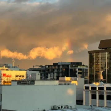 บริการไม่ดีเท่าที่เมลเบิร์น และการออกแบบดูเก่าไปหน่อย แต่สภาพแวดล้อมสะอาด พื้นที่กว้างขวาง และทำเลสะดวก มีป้ายรถเมล์และสถานีรถไฟใต้ดินอยู่ด้านล่าง และห้างสรรพสินค้าขนาดใหญ่ ซูเปอร์มาร์เก็ต และร้านอาหารอยู่ใกล้ๆ อย่างไรก็ตาม เนื่องจากมีอาคารสามหลัง และเราได้พักที่อาคาร 2 มีเพียงเคาน์เตอร์ต้อนรับในอาคาร 1 เท่านั้นที่มีพนักงานให้บริการเป็นเวลานาน ทำให้เราต้องเดินทั้งตอนเช็คอินและเช็คเอาท์ หวังว่าโรงแรมจะจัดพนักงานประจำทั้งสองอาคารเพื่ออำนวยความสะดวกในการเช็คอิน/เช็คเอาท์ ในวันสุดท้าย เราได้เห็นพระอาทิตย์ตกและรุ้งกินน้ำที่สวยงามจากระเบียง เป็นการปิดท้ายทริปที่สมบูรณ์แบบ