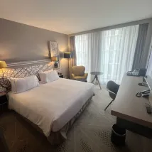 If you are travelling to Bordeaux with a train, the hotel is just around 10 minute walk away. It is slightly further away from the city centre, However, there is a bus stop right outside the hotel and it takes you to the centre in just few minutes. We booked the room with king bed and the room was very spacious and so was the bathroom. The shower was great and can’t recommend it enough. The bed was also amazing and very comfortable. There is room service everyday if you would like that also. However, there are few things to mention such as the aircon which didn’t work particularly great. We have put it on the minimum temperature setting which is 19 degrees and the room was definitely not getting cold enough. Additionally, the TV remote at times didn’t work particularly great which isn’t a big issue but something to note.