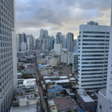 ที่พักทำเลดีมาก ๆ ตรวข้ามโรงแรมเป็น Haeundae market รอบข้างมีร้านอาหาร และร้านขนม เยอะเลย สามารถเดินไปได้ มี olive young ด้วย สำหรับการเดินทางก็สะดวก ห่างจาก metro ไม่ไกล เดินแปปเดียว ห้องพักสะอาด เตียงนอนสบาย แอร์เย็นปกติ ห้องน้ำเป็นอ่างอาบน้ำ ในห้องมองเห็นวิวทะเลหน่อย ๆ