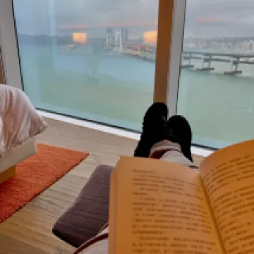 ฉันพักในห้องสูงที่มองเห็นวิวทะเลและมีประสบการณ์ที่ยอดเยี่ยม อาหารเช้าก็เข้มข้นมากเช่นกัน เพียงแต่เราไม่พบพนักงานที่เข้าใจภาษาจีนเลย เราสามารถสื่อสารได้เฉพาะภาษาอังกฤษและภาษาญี่ปุ่นเท่านั้น ซึ่งไม่สะดวกสักหน่อย
