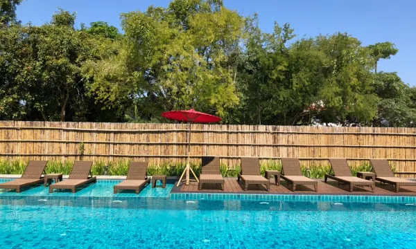 ตำแหน่งและบรรยากาศ: ที่พักตั้งอยู่ในพื้นที่เงียบสงบ รายล้อมด้วยธรรมชาติและต้นไม้เขียวขจี ห่างจากใจกลางเมืองเชียงรายเพียง 40 นาที พร้อมบริการรถตุ๊กตุ๊กฟรีเพื่อเดินทางไปยังสถานที่ท่องเที่ยวหลัก ทำให้เข้าถึงทั้งความสงบและความสะดวกสบายได้ในเวลาเดียวกัน