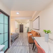 ห้องพักใหญ่มาก มีห้องครัว ตู้เย็น เครื่องซักผ้าด้วย พนักงานต้อนรับบริการดีมาก ใกล้แหล่งท่องเที่ยวหงหยาต้ง มีของอร่อยๆ แถวนั้นเยอะมาก ไปไหนมาไหนก็สะดวก โปรเจคเตอร์ใหญ่สะใจ ดูหนังฟินสุดๆ