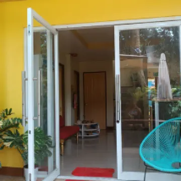 L'emplacement est parfait un petit havre de paix au milieu de Coron. L'endroit est très jolie avec ces nombreuses plantes en devanture et la couleur jaune de l'hôtel donne un superbe contraste. Sinon la chambre est spacieuse et la clim un plus indéniable par cette chaleur. La terrasse, sympa pour prendre l apéro en fin de journée.