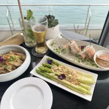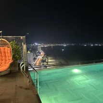 วิวทะเลในโรงแรม Le Sands Oceanfront นั้นสวยงามมากในห้องของเราที่ชั้น 15 และแม้กระทั่งที่ชั้น 3 ในร้านอาหารระหว่างมื้อเช้า มีสกายบาร์และสระว่ายน้ำบนชั้นดาดฟ้าของโรงแรม เราสนุกกับการว่ายน้ำและวิวทะเลในตอนกลางคืนด้วยเช่นกัน พนักงานในโรงแรมเป็นมิตรและช่วยเหลือดี มีร้านอาหารทะเลอยู่สองสามร้าน เช่น Haizo เราทานอาหารเย็นที่นั่นสองครั้งเพราะเราชอบปลาเผามาก เรายังสั่งปลาหมึกนึ่ง ผักบุ้งทอดกระเทียม และข้าวผัดทะเล เราชอบอาหารเหล่านี้ทั้งหมด มีบริการซักรีด นวด และร้านอาหารริมทะเลรอบๆ โรงแรม คนในท้องถิ่นใช้เวลาที่นั่นประมาณ 16.30 น. เพื่อว่ายน้ำ เรายังไปชมหงส์ที่นั่นก่อนพระอาทิตย์ตกอีกด้วย พระใหญ่และท่าจอดเรือ Son Tra อยู่ใกล้กับ Le Sands มาก ใช้เวลาเดินทางไม่ถึงครึ่งชั่วโมง โดยทั่วไปแล้ว เราจะมีช่วงเวลาที่ดีที่นี่ในดานัง เนินเขาบานา ฮอยอัน และภูเขาหินอ่อนเป็นสถานที่ท่องเที่ยวยอดนิยม เราใช้ Grad ti เพื่อเดินทางไปยังสถานที่ต่างๆ