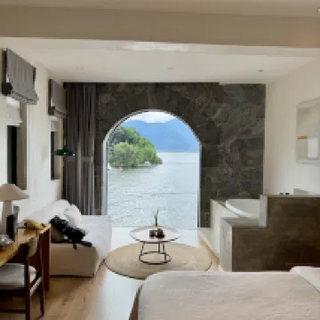 บริการ: การบริการของโรงแรมดีเยี่ยมและใส่ใจลูกค้าเป็นอย่างมาก ของต้อนรับ: มีเครื่องดื่มต้อนรับ เช่น น้ำผลไม้และชา พร้อมด้วยวาฟเฟิล อาหารเช้าของโรงแรม: ข้าวเส้นยูนนานสำหรับมื้อเช้านั้นอร่อยที่สุดเท่าที่ฉันเคยทานมาในยูนนานเลยค่ะ นอกจากนี้ยังมีบริการนมก่อนนอนให้อีกด้วย วิวและกิจกรรม: วิวริมทะเลสาบเอ๋อไห่มีความงดงามเป็นเอกลักษณ์โดดเด่น และยังมีแพ็กเกจถ่ายภาพท่องเที่ยวให้เลือก: ถ่าย 20 นาที รับฟรีไฟล์ภาพต้นฉบับ 3 ภาพ