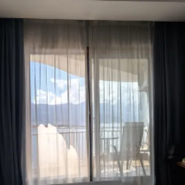 ระเบียงของโรงแรมทั้งหมดน่าจะมีดีไซน์แบบนี้ที่สามารถมองเห็นวิวเมืองครึ่งหนึ่งและวิวทะเลครึ่งหนึ่ง ถ้าแดดออกและอากาศดี วิวก็ถือว่าใช้ได้เลยครับ/ค่ะ แต่โรงแรมเก่ามากจริงๆ การตกแต่งและสิ่งอำนวยความสะดวกต่างๆ ก็เก่าและทรุดโทรม ผ้าปูที่นอนเก่าและแข็งมาก ผ้าเช็ดตัว ผืนเล็กและแข็งกระด้าง ไม่นุ่มฟูเลย ห้องน้ำก็แคบมาก ต้องยืนอาบน้ำในอ่างอาบน้ำ ถ้าเป็นคนพิถีพิถันเรื่องคุณภาพการเข้าพัก แนะนำให้เลือกโรงแรมใหม่ดีกว่าครับ/ค่ะ