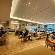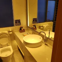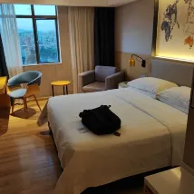Room is ok. So fat quite clean but little smell in toilet maybe due to the flooring. Is convenient for food
