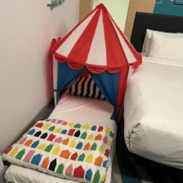 The hotel is conveniently located, close to major attractions and the airport. Most of the staff are very friendly and even offered a baby tent, which was a big surprise for the little one. Right downstairs, you'll find Carrefour and a shopping center, plus a subway station.