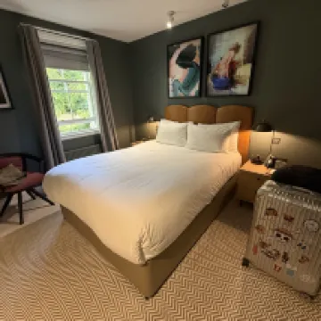 The place is quiet and interior is great. Room is very big and there is a tub for bath. Coffee corner is good and free of charge. Reception was nice and introduce the hotel and room to us. Easy to go to Edinburgh city center as the bus stop is just outside the hotel with around 3 mins walk. Would recommend this hotel to others!