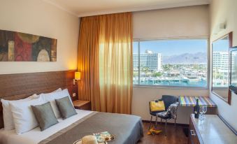 Family friendly 4 star hotel. Staff is very nice and accommodating, and willing to help out on most any issue. We were on 4th floor with view both to pool and the Gulf of Eilat which was very nice. Clean. Great showers! Good and abundant breakfast with decent variety. Friday night Shabbat dinner was very generous with lots of food. Nice atmosphere in lobby. A few minute walk to beach and promenade. No food room service. The phone reservation receptionist could be more user / sales friendly. Called a few times ahead of arrival, and got quite an apathetic receptionist. At the hotel though as mentioned all of the staff member were very nice and accommodating. Wheelchair accessible, would be nice if they had some more accessible rooms. Having said that we needed a wheelchair for my 90 year old mom, and the Hotel had one, and let us use it free of charge for the duration of our stay.