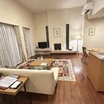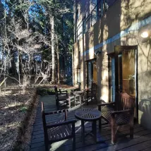 วิลล่าในป่ามีหิมะที่ยังไม่ละลาย อากาศดีมาก ห้องมีขนาดใหญ่และเป็นมิตรกับสัตว์เลี้ยงมาก สถานที่อื่นๆ เกือบทั้งหมดในญี่ปุ่นนำลูกสุนัขมาด้วย น้ำพุร้อนไม่สะดวกเกินไป แต่ฉันพอใจกับทุกสิ่งทุกอย่างมากโดยเฉพาะอาหารเย็นเทปันยากิ