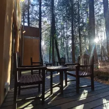 숲속에 아름다운 최고의 숙소!! 호텔픽업을 요청하면 편하게 대중교통을 이용할 수 있습니다. 체크아웃하고 나가는 길에 엄마 노루와 야기 노루들이 지나가는 모습도 볼 수 있었어요~