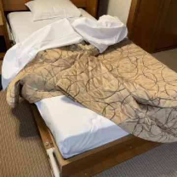 ห้องพักมองเห็นวิวทะเลสาบคาวากุจิโกะได้สวยงามมาก แต่บันไดในห้องค่อนข้างลำบาก ต้องลงบันไดหนึ่งขั้นเพื่อใส่รองเท้าแตะจากห้องเสื่อทาทามิ แล้วขึ้นบันไดอีกขั้นเพื่อเข้าห้องน้ำ ซึ่งไม่สะดวกเลย