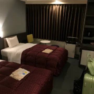 เช็คอินและเช็คเอาท์ง่าย มีอาหารเช้าแบบง่ายๆ รวมอยู่ด้วย! เตียงสามเตียงสำหรับสามคน! กระเป๋าเดินทางใบใหญ่ไม่พอ! โดยรวมแล้วก็โอเค ขอแนะนำราเมนไก่ถ่านท้องถิ่น! อร่อยมาก! เปิดถึงเที่ยงคืน มี 7-11 และ Lawson อยู่ฝั่งตรงข้าม