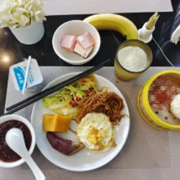 The hotel is one block away from a mall, and the neighbourhood was quiet at night. The breakfast buffet was big and changed each morning, although always with spicy Jiangxi options.