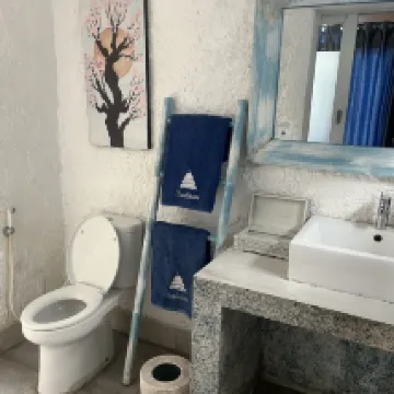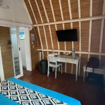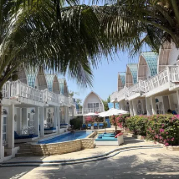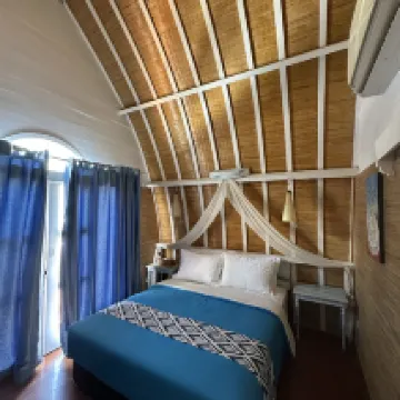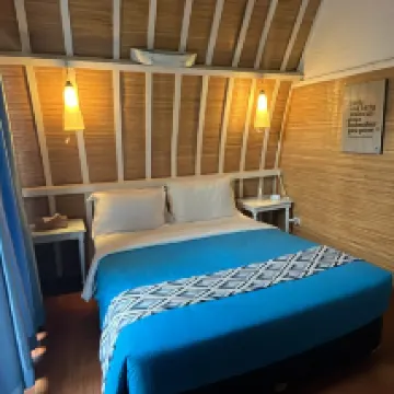 The hotel is really nice, we loved the design. It’s authentic. The bed was super comfy and sheets were clean. You will probably see ants here and there but that’s normal considering the surrounding. The hotel is on the opposite side of the port where most people are and what is considered to be the center of the island. However, the island is small, you can make a full circle in about 30min with the bicycle. The area of the hotel is quiet and calm, yet you’ll find many nice restaurants or bars, as well as a market near it. Variations of breakfast are offered. Stuff is very friendly. Worth the price.