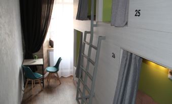 Отличный хостел. Новый. Идеально чистый. Уютный. Капсульный тип размещения, есть шторки. Не душные. Капсулы огромные, можно лежать поперёк 👍🏼 Белье чистое, сведён, поглаженное. И что удивило: выдают 2 белоснежных полотенца! Два! Это просто уровень для хотела! Забираться на верхний ярус Мега удобно. Есть индивидуальные ящики запирающиеся для вещей. Санузлы чистые, находится приятно. Есть кухня со всем необходимым, чай/печеньки бесплатно. Wi-Fi «живой», можно работать. В комнате шкаф, длинный стол с большими зеркалами, уютный подоконник. Отдельные комнаты для девочек и мальчиков.