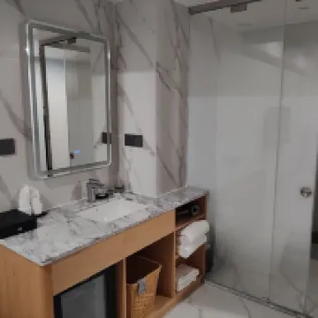 ตั้งแต่ก้าวเข้ามาในล็อบบี้ก็ประทับใจกับการตกแต่งที่สวยงาม มีความทันสมัยเรียบง่ายแต่ก็ยังอบอุ่น ห้องพักกว้างขวางและสว่าง สิ่งที่ทำให้ประหลาดใจที่สุดคือมีโปรเจคเตอร์จอใหญ่ที่ให้ภาพคมชัดสูง การนอนดูหนังบนเตียงตอนกลางคืนเป็นอะไรที่มีความสุขมาก ที่น่ารักไปกว่านั้นคือโรงแรมยังมีบริการสมาชิกฟรี ทำให้สามารถดูหนังและซีรีส์ยอดนิยมได้หลากหลาย เจ้าหน้าที่ต้อนรับคุณ Xiaoyang เป็นกันเองมาก และเช็คอินเช็คเอาท์ได้อย่างรวดเร็ว ไม่ว่าจะเป็นสิ่งอำนวยความสะดวกหรือคุณภาพการบริการก็เกินความคาดหมาย คุ้มค่ามาก! ขอบคุณคุณ Yang Can เป็นพิเศษ ที่ช่วยอัปเกรดเป็นห้อง Executive Twin Room แถมยังให้ขนมหวานอีกด้วย ประทับใจมากค่ะ
