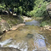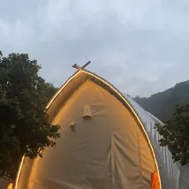 ที่นี่เป็นสถานที่ที่น่ารักสำหรับการไปพักผ่อนสักหนึ่งหรือสองคืน เป็นสถานที่ที่เป็นมิตรกับสัตว์เลี้ยงด้วย ดังนั้นมันจึงเหมาะสำหรับฉัน! แผนกต้อนรับให้ความช่วยเหลือดีมาก และคุณสามารถเพิ่มพวกเขาลงใน Wechat ของคุณเพื่อติดต่อพวกเขาโดยตรงได้ตลอดเวลา มีทุกสิ่งที่จำเป็นเพื่อความสะดวกสบาย ฉันถามว่าฉันจะมีกาต้มน้ำสำหรับในเต็นท์หรือกาแฟซึ่งพวกเขาสามารถจัดเตรียมให้ฉันได้หรือไม่ ตัวเลือกอาหารค่ำ คุณสามารถเลือกหม้อไฟไก่หรือหม้อไฟกุ้งน้ำจืดได้ที่แผนกต้อนรับ ซึ่งคุณสามารถทำเองข้างเต็นท์ หรือบอกพวกเขาว่าคุณต้องการปรุงในพื้นที่รับประทานอาหารของทางร้าน มิฉะนั้นคุณสามารถย่างสิ่งของของคุณเองได้ที่จุดตั้งแคมป์ของคุณ แนะนำให้นำอาหารไปทำบาร์บีคิวเองที่นั่น เนื่องจากตัวเลือกมีจำกัด ตอนที่ฉันถามพวกเขาให้มันหวานมาด้วย และหม้อไฟไก่ก็อร่อยและอิ่มมาก! เต็นท์สะอาด สบาย และมีแอร์ เราพักในเต็นท์ที่เล็กที่สุดที่พวกเขาเตรียมไว้ให้ และมันก็สมบูรณ์แบบสำหรับสิ่งที่เราต้องการ พวกเขามีสระว่ายน้ำที่เปิดให้บริการตั้งแต่เวลา 16:30-18:30 น. เท่านั้น คงจะดีถ้ามีว่างในตอนเช้าด้วย!! บริเวณโดยรอบรีสอร์ทไม่มีอะไรให้ทำมากนัก ตกปลาก็ได้ เดินป่า ริมลำธารก็ได้ ฉันแนะนำให้ทำกิจกรรมบางอย่าง เช่น แบดมินตันหรือเกมกระดานอื่นๆ เป็นต้น มีพื้นที่เล่นที่ดีสำหรับเด็ก และมีสไลเดอร์สนุกๆ รวมอยู่ในการออกแบบของบางห้อง มีสิ่งอำนวยความสะดวกเต็นท์หลายประเภท และบางแห่งมีความเป็นส่วนตัวดีมากเมื่อมองออกไปเห็นลำธาร และมีอ่างน้ำพุร้อนกลางแจ้ง (สระแช่ตัว) ระเบียงเต็นท์เล็กๆ ไม่มีความเป็นส่วนตัว แต่เพียงพอสำหรับการพักระยะสั้นๆ ท่ามกลางธรรมชาติ การเดินทางเป็นเรื่องง่ายด้วย Didi หรือรถเช่า การกลับมาคุณเพียงแค่ต้องค้นหาในแอปให้กว้างขึ้น เนื่องจากทำเลที่ตั้งค่อนข้างห่างไกลจากพื้นที่พลุกพล่าน แต่ก็ไม่ใช่ปัญหาเช่นกัน