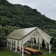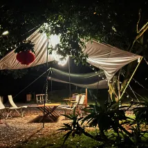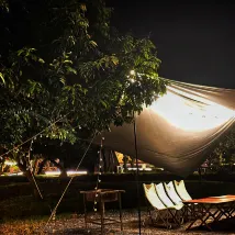 สิ่งอำนวยความสะดวก: มีห้องน้ำตรงทางเข้าถึงแม้จะค่อนข้างเล็ก (แต่เต็นท์ไม่ค่อยดีนักเพราะแยกแห้งและเปียกได้) แล้วก็มีเตียงนอนและระเบียงกลางแจ้งเล็กๆและสระว่ายน้ำ สุขอนามัย: สุขอนามัยของเตียงและสระว่ายน้ำดูโอเค สภาพแวดล้อม: มีม้านั่งและโต๊ะตั้งแคมป์อยู่สองสามตัวด้านนอกซึ่งคนกลุ่มหนึ่งสามารถเล่นได้ และยังมีม้านั่งด้านนอกแต่ละห้องด้วย นอกจากนี้ยังมีชิงช้าและฉากเล็กๆ สำหรับถ่ายรูป และยังมีลำธารด้วย (แต่ ไม่รู้ว่าเดือนอะไรหรือน้ำไหลน้อยมาก) บริการ: มีเตาบาร์บีคิวให้บริการ (สามารถซื้อถ่านบาร์บีคิว ตาข่าย เครื่องปรุงรส ฯลฯ) หากคุณต้องการยาจุดกันยุงหรือเครื่องดื่ม เพียงขอให้พ่อบ้านมาส่ง เรื่องย่อ : ผมมาถึงที่ตั้งแคมป์ตอนบ่าย ผมกับแฟนมาเล่นกันช่วงสุดสัปดาห์ (ฝนอาจจะตก และคนค่อนข้างน้อยในวันอาทิตย์) เราอาบน้ำกันตอนเย็นๆ (ดูเหมือน เป็นน้ำธรรมดา) กลางคืนมีลมแรงและมีฝนตกจึงทำให้เต็นท์ค่อนข้างดัง แนะนำให้มาโดยรถยนต์เพราะอยู่ค่อนข้างไกลและดูเหมือนไม่มีอะไรให้ทำใกล้ๆ (อาจจะไม่มีเวลาหาจึงพักไว้หนึ่งคืนแล้วกลับมาในวันรุ่งขึ้น) ส่วนราคา/ประสิทธิภาพ อัตราส่วนกำลังดีแต่ราคาบ้านจะค่อนข้างสูง (แต่สภาพแวดล้อมโดยรอบและการดูแลรักษาห้องค่อนข้างแย่) (สูง) อีกอย่างต้องพกยากันยุงไปด้วยเวลาอยู่ใกล้ๆ ธรรมชาติ.
