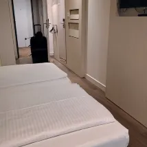 I was there for 2 nights. Location was good and room was also cozy and nice. All things are good except the amenities. It would be good if they should provide tea kettle with tea bags. There was only 1 small bottle of water as a welcome drink and they never refill it. There was no toothpaste in the toilet. Breakfast was also good but they should charge €10 but instead they are charging €15. Rest is good and recommended.
