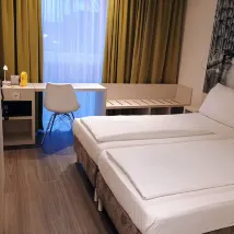 Das Zimmer war geräumig und sauber. Im Badezimmer alles topp. In der Lobby gab es eine Bar, wo auch Snacks und Pizza zu haben war. Der Frühstücksraum war nebenan gelegen. Alles in Allem war es ein schöner und guter Aufenthalt im Hotel.