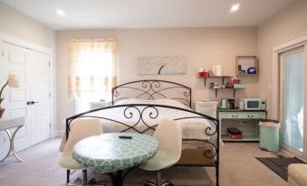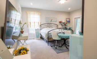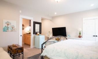 Guests will indulge in a lavish private suite encompassing a bedroom, bathroom, small refrigerator, coffee and teakettle, microwave, makeup table, desk, sofa, and a large screen TV with popular streaming services. Our modern and pristine space aims to provide all essential amenities for a seamless travel experience including Highspeed FIOS Wifi. Step outside to discover a serene oasis, featuring a swinging daybed and two reclining outdoor chairs on a covered deck.About pets:No pets allowed.About checkOut:Check out before 11:00 AM.About children:Children allowed: ages 0-17.About checkIn:Check in after 4:00 PM.About smoking:Smoking is not permitted.About minBookingAge:Minimum age to rent: 18.About events:No events allowed.