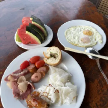 ที่ตั้งของโรงแรมดี มีสถานที่ทานอาหารมากมายหากเดินลงไปชั้นล่าง ฉันพบร้านขายสุกี้และก๋วยเตี๋ยวแปลกๆ นั่งทานอาหารอยู่ริมถนนกับคนท้องถิ่น ราคาถูกมาก สุกี้ยากี้ดูแปลกๆ รสชาติก็แปลกๆ เช่นกัน แต่คนในพื้นที่กลับชอบมาก อัตราการเข้าพักอยู่ที่ 80% และฉันเป็นชาวต่างชาติเพียงคนเดียวในที่แห่งนี้ ยังมีร้านค้าอื่นๆ อีกหลายแห่งที่มีผู้คนคับคั่งเป็นจำนวนมาก และเมื่อดูเผินๆ ส่วนใหญ่จะเป็นคนจีน ฉันไม่อยากไปที่นั่นเพราะไม่อยากไปร่วมฝูงชน และที่สำคัญคือไม่มีที่นั่งว่างเลย อีกไม่กี่ก้าวก็จะถึงถนนฟานเลาแล้ว แต่ผมก็พอใจแล้วจึงหันหลังกลับ ผมจองห้องชั้นสามที่มีระเบียง แต่ระเบียงชั้นล่างใหญ่กว่าและมองเห็นวิวได้เต็มที่ ฉันแทบจะมองไม่เห็นถนนและมองเห็นทิวทัศน์ที่อยู่ห่างออกไปเพียงหนึ่งช่วงตึกเท่านั้น หากคุณอารมณ์ดี คุณสามารถย้ายเก้าอี้ไปที่ระเบียงและนั่งจิบกาแฟหรือชาได้ ฉันย้ายกระเป๋าเดินทางของฉันไปที่ระเบียงเพื่อตากผ้าและวางไว้ข้างเครื่องปรับอากาศ ผ่านไปครึ่งคืนเสื้อผ้าก็แห้งหมดแล้ว สิ่งนี้สมควรได้รับการรีวิวระดับห้าดาว ฉันไม่เคยอยู่ในห้องที่มีความเหมาะสมกับการตากผ้าขนาดนี้มาก่อน