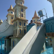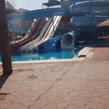 Terrible hotel!! Let’s start with cleanliness — they clearly don’t know what that means here. The place was dirty, the hotel room was dirty, the bed linens were dirty, disgusting! The surroundings of the hotel were untidy, the grass was overgrown, no nice plantings. Just ugly. The food was awful, almost the same food every day. Very tasteless. We ended up going to the store to buy our own snacks to eat. The smaller water park area was otherwise nice for sunbathing, but the pool boy who was constantly blowing his whistle was extremely annoying. The kids went down the slide, and even before the child’s head had come above the water, he was already blowing the whistle x26788 times to tell them to swim out of the way. SHOCKING BEHAVIOR! No holiday feeling whatsoever. The hotel area smelled like a garbage dump. The service at the reception was good, and the cleaner was friendly. But there was nothing else good about this place.