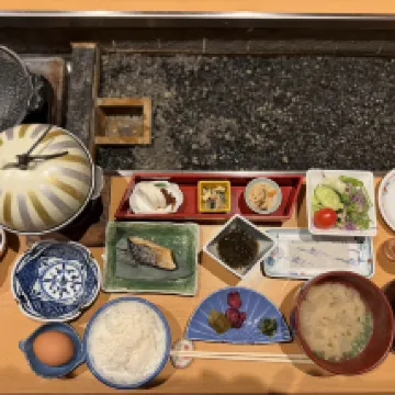 I think this ryokan has great dinner. Each room guests have our own dining room, and the kaiseki is very delicious. The location is also right next to the black sand bathing.